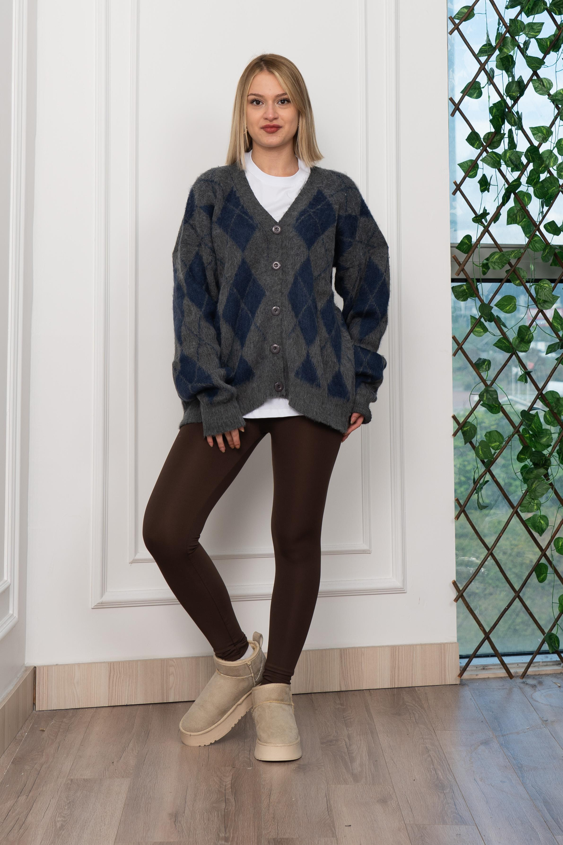 Baklava Desen Salaş Oversize Yün Hırka 27331