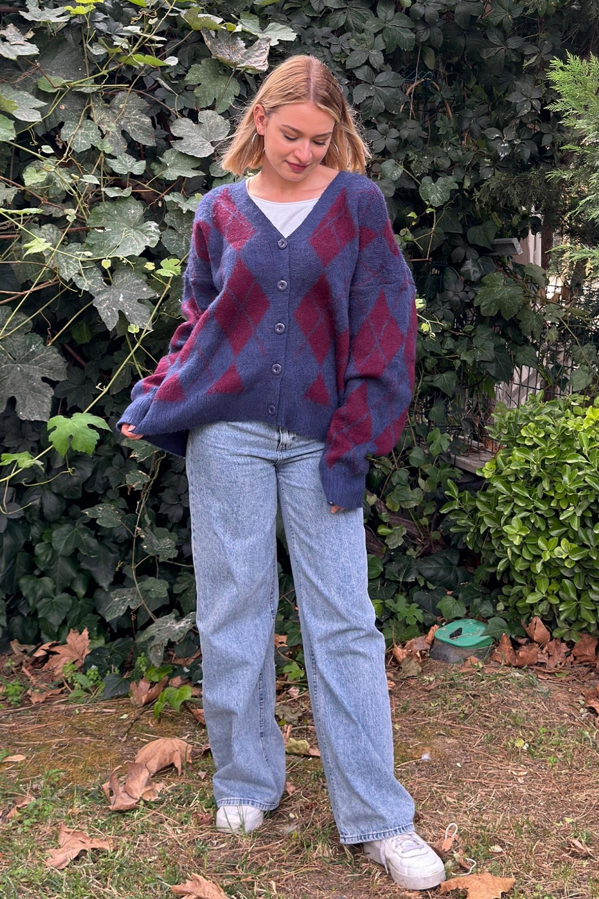 Baklava Desen Salaş Oversize Yün Hırka 27331