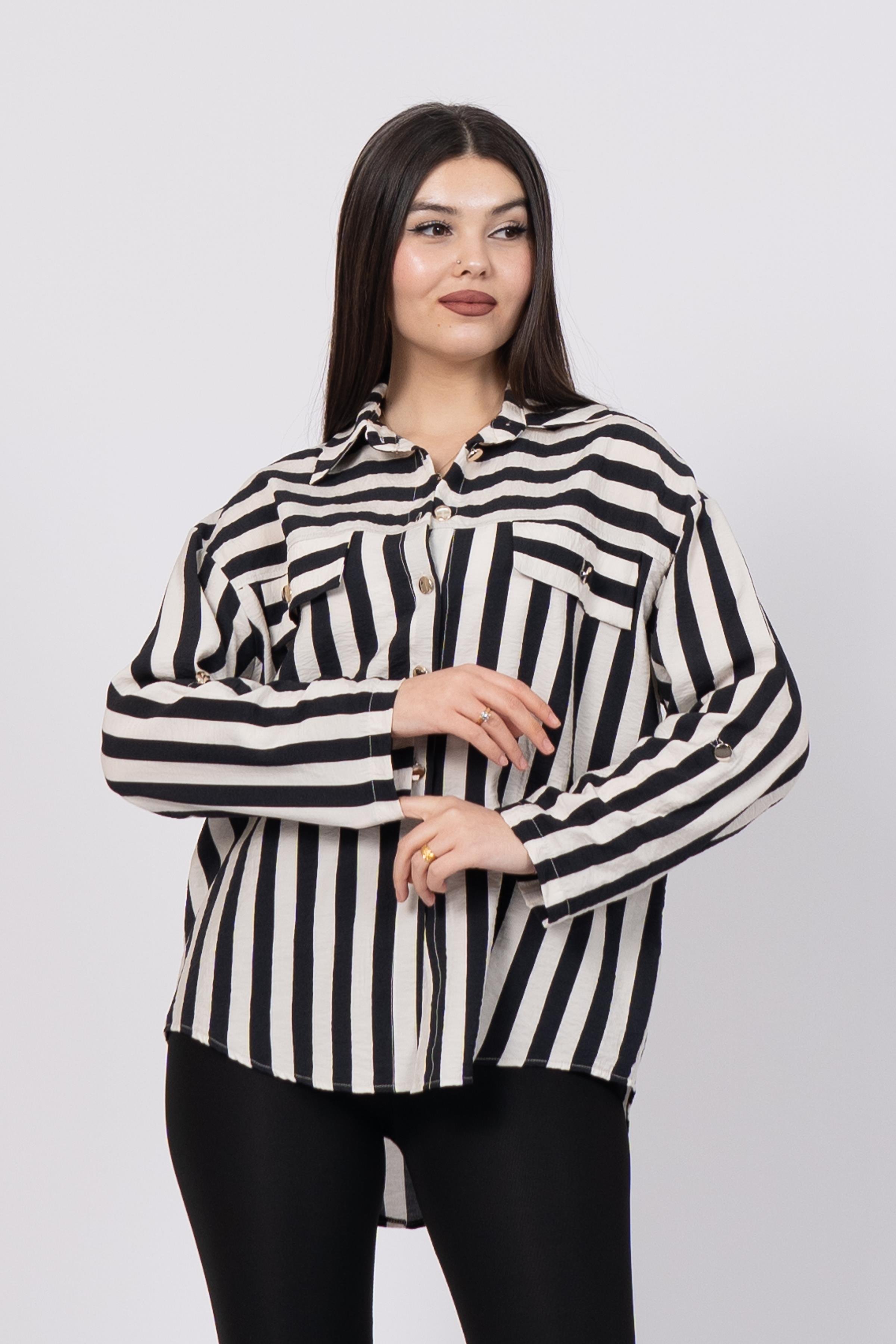Çizgili Uzun Oversize Gömlek 70009