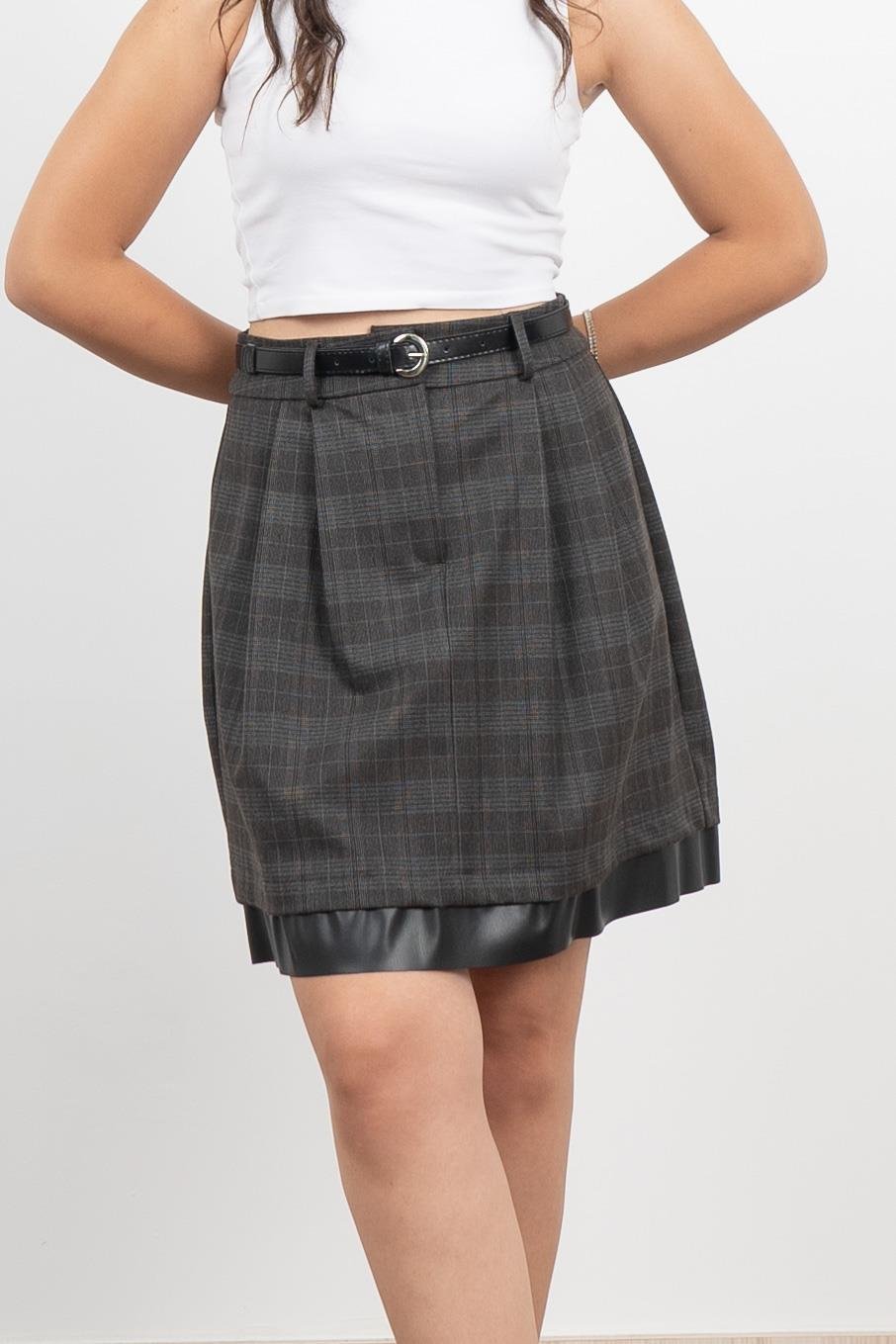 Deri Parçalı Kemerli Pileli Etek 6740 Deri Parçalı Kemerli Pileli Etek 6740