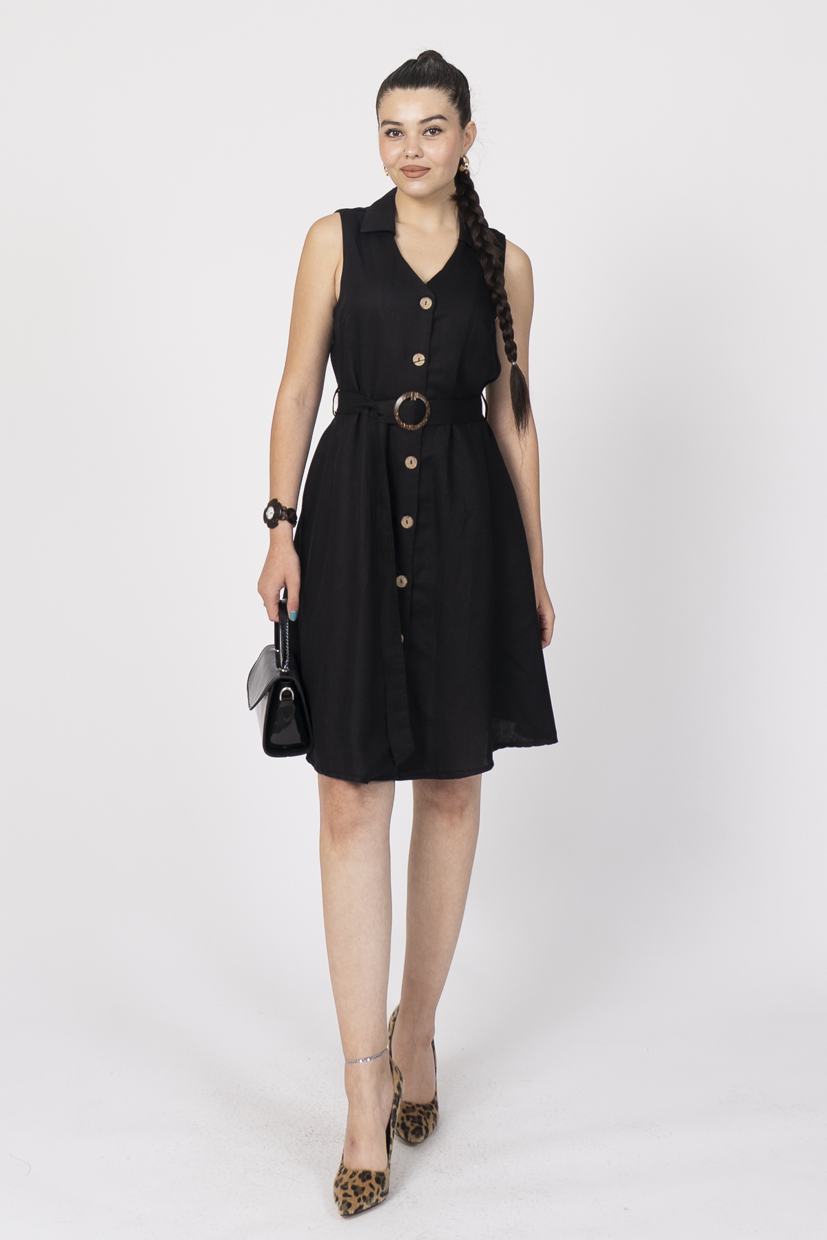 Düğme Detaylı Kuşaklı Keten Kolsuz Elbise 50315 (25MYARY50315-09)