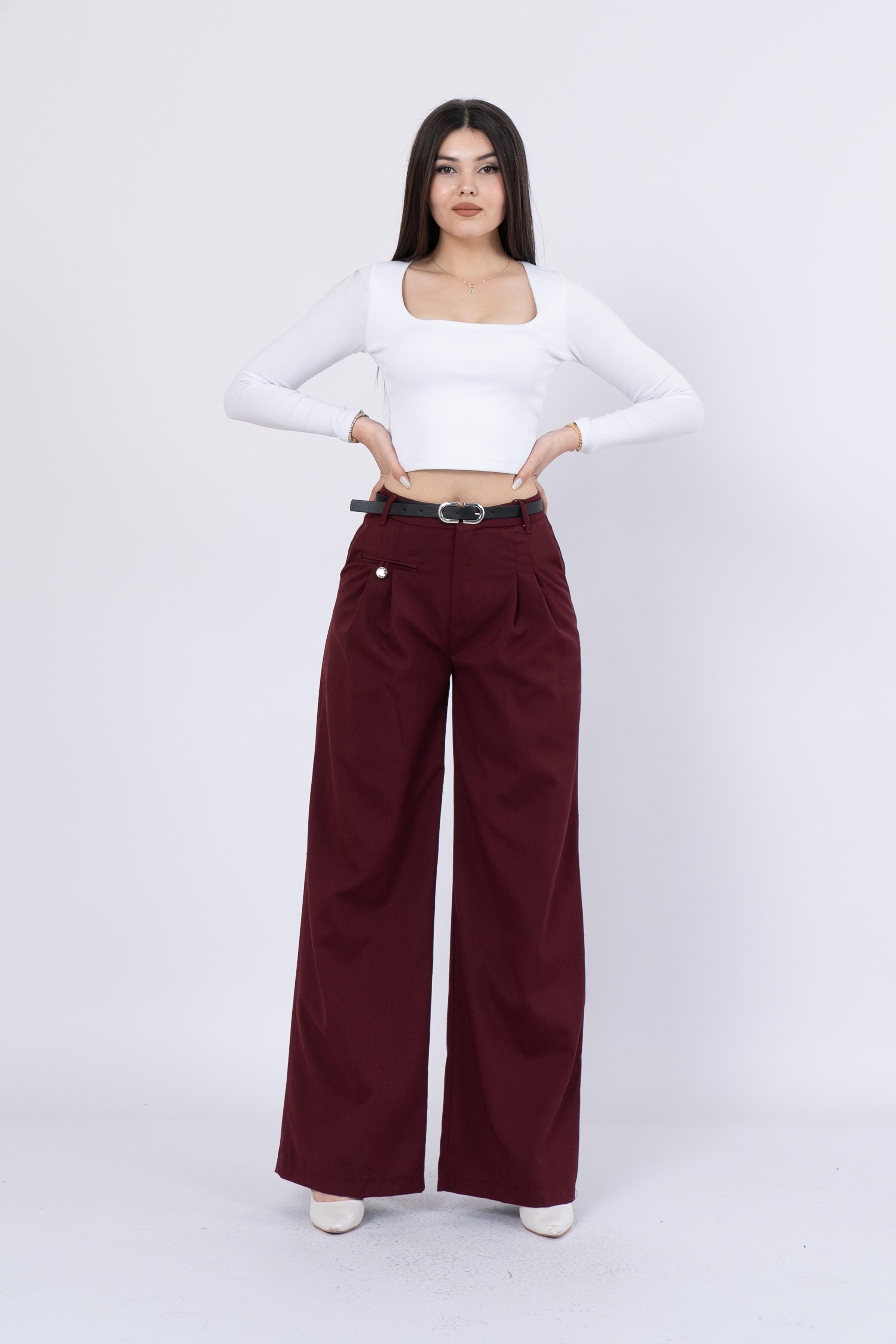 Kemerli Ve Pileli Cep Düğme Detaylı Bol Paça Pantolon 30222 Kemerli Ve Pileli Cep Düğme Detaylı Bol Paça Pantolon 30222