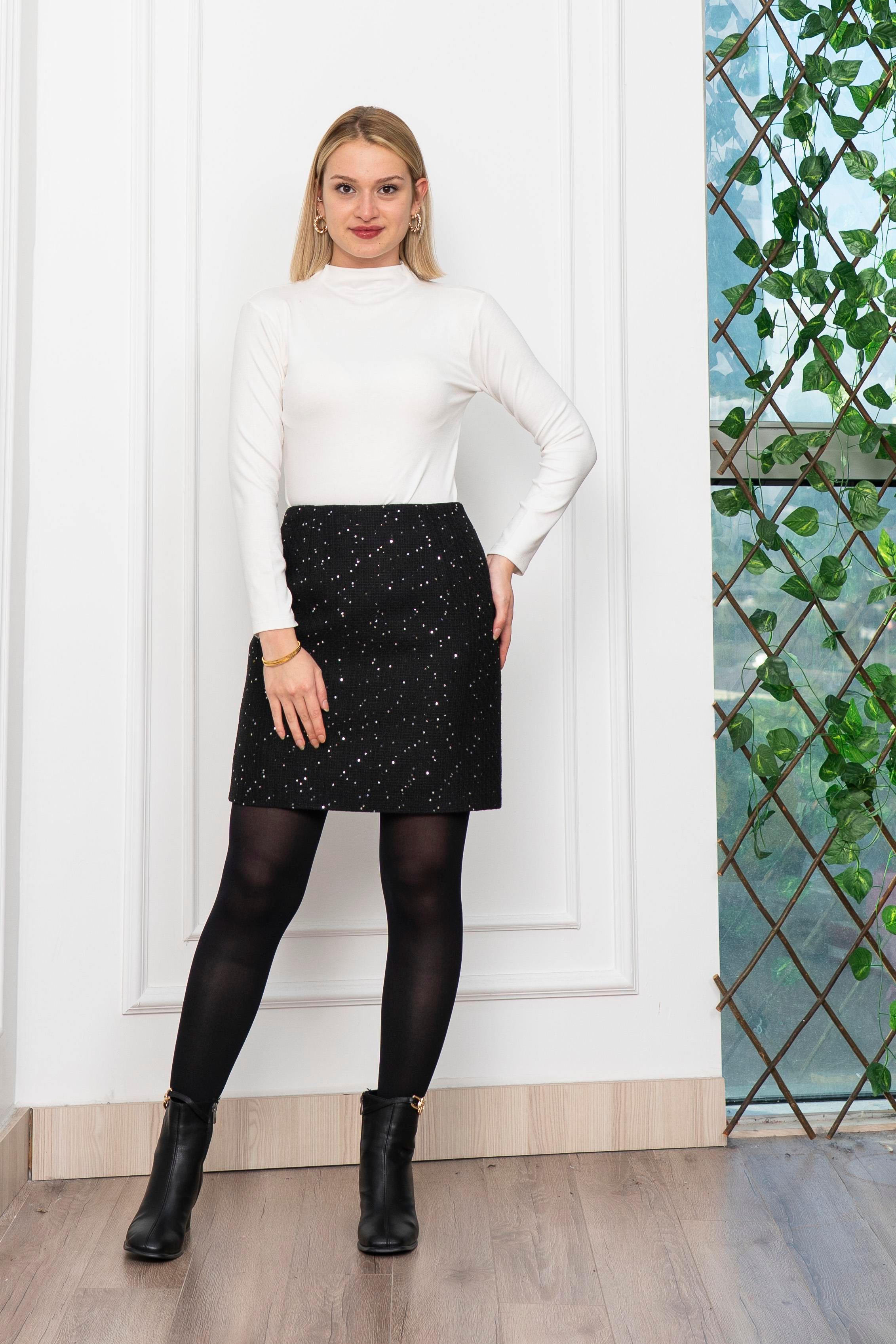 Miss Vina Pul Detyaylı Buklet Kumaş Mini Etek 6815