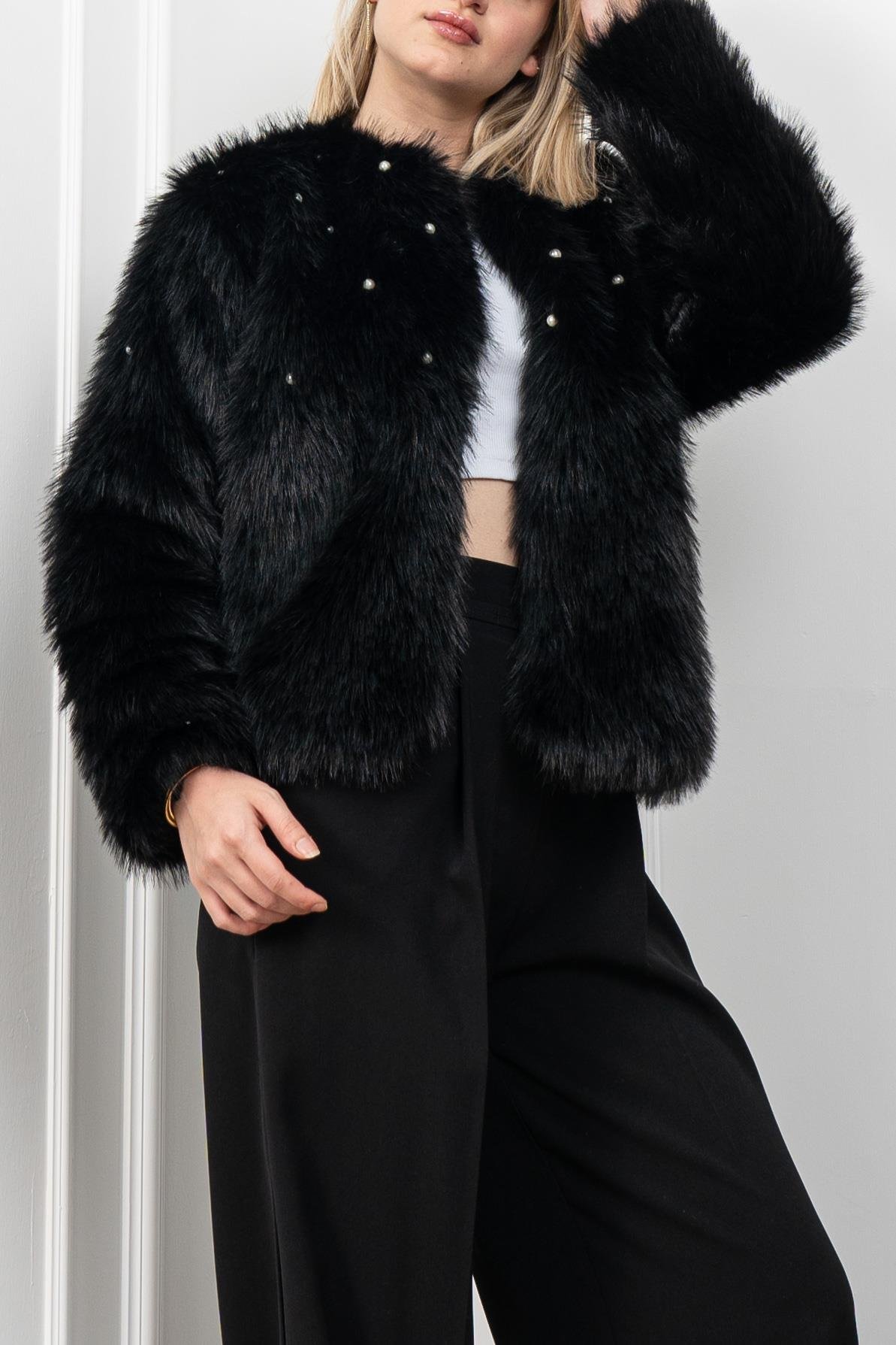 İnci boncuk işlemeli peluş kürk mont ceket- astarlı - likrasız-cepsiz
