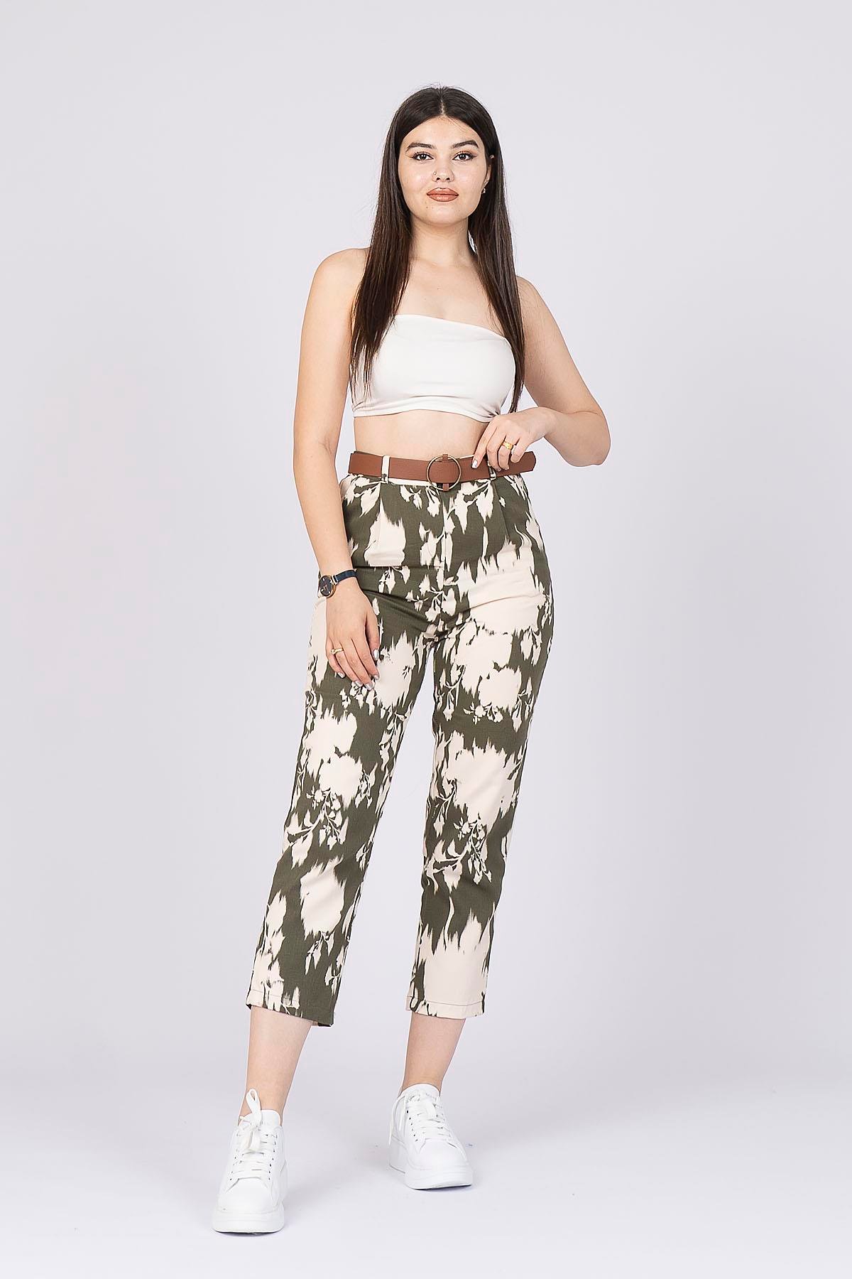 Kemerli Kot Gabardin Kumaş Desenli Trend Pantolon