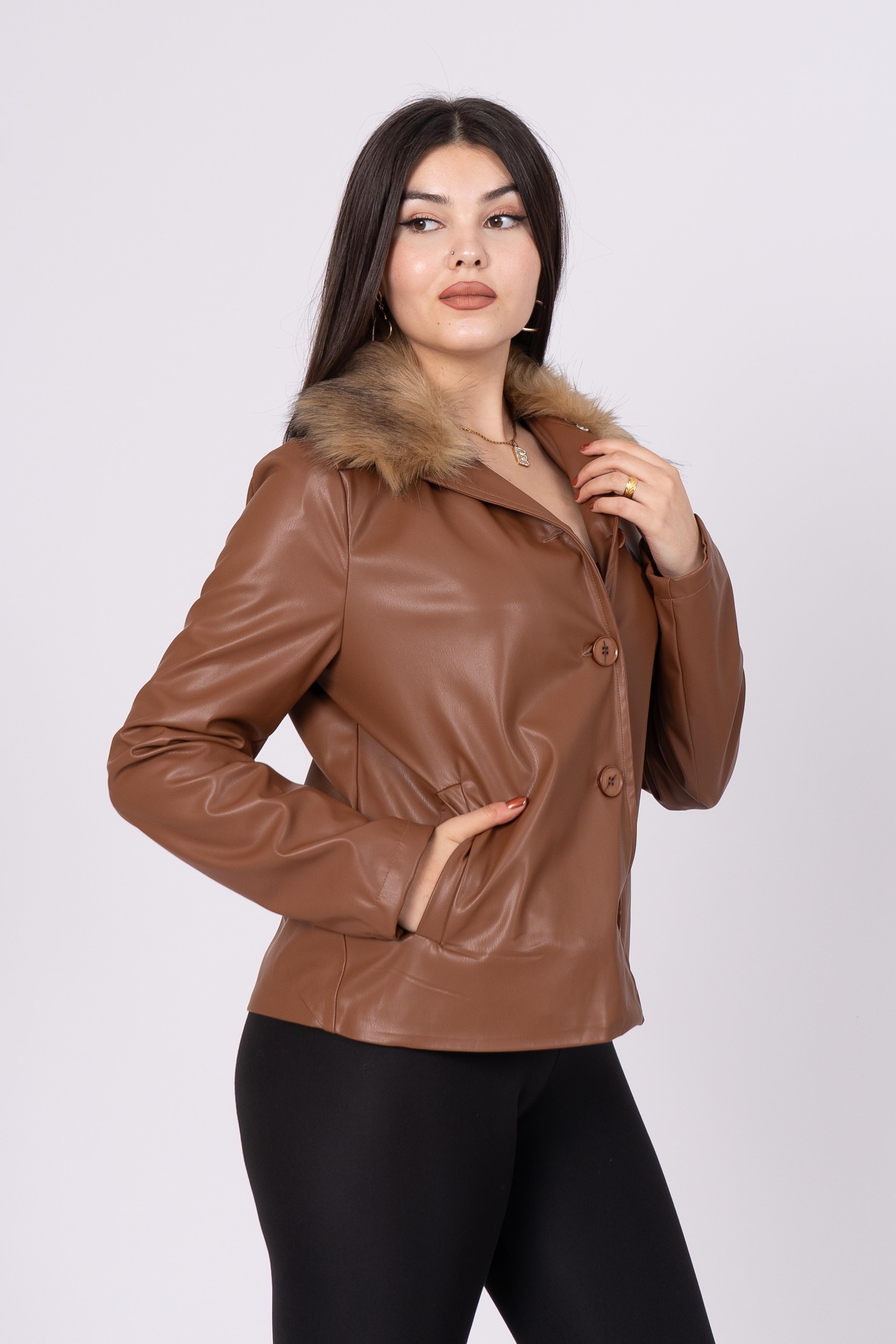 Suni Deri Astarlı Deri Ceket ve Takma Kürk Detaylı Model